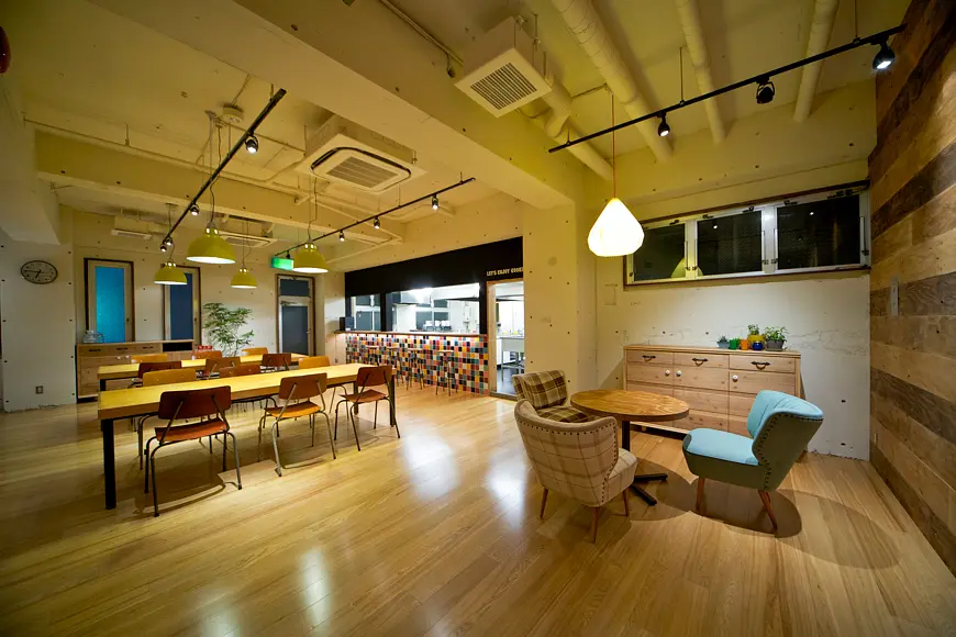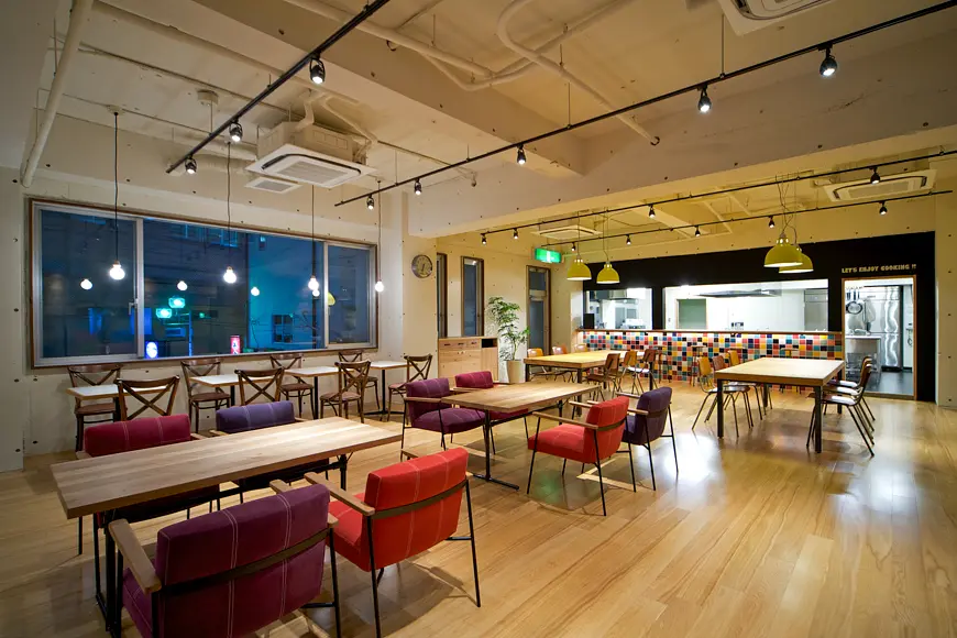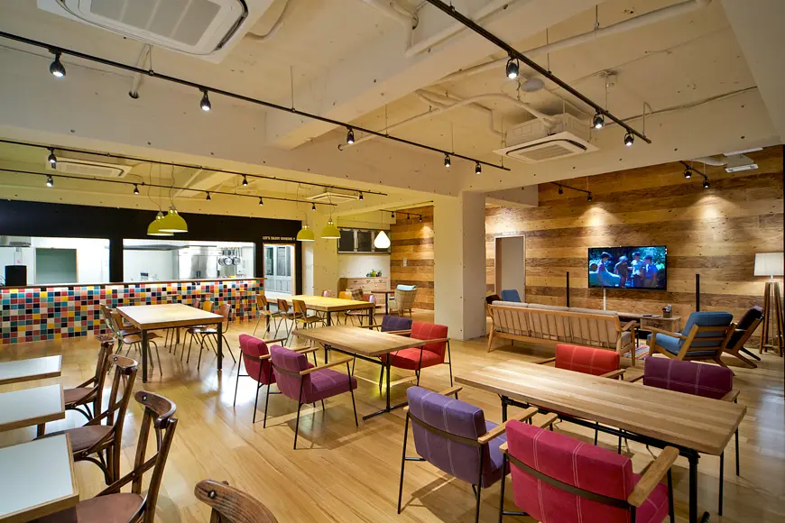 ソーシャルアパートメント宮前平は、宮前平駅から徒歩1分の好立地にあり、都会へのアクセスが便利です。共用空間には「HOME」「WORK」「EAT」「PLAY」などのテーマ別スペースがあり、アイランド型キッチンやフィットネススタジオ、ビリヤードルームなど多彩な設備が揃っています。各階にトイレやバスルームが完備され快適に生活できます。