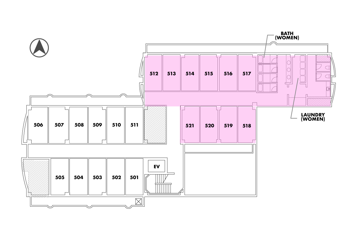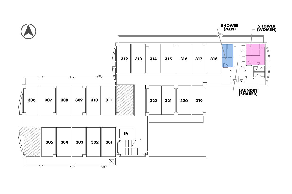 居室は鉄筋コンクリート造で、自分だけの時間をしっかりと確保。また、各階にトイレやバスルーム、ランドリーが設置されており、ハウスキーパーによる清掃でいつでも綺麗な状態で利用できます。プライベートもソーシャルもいつでも気持ちよく使える快適な環境が揃っています。
