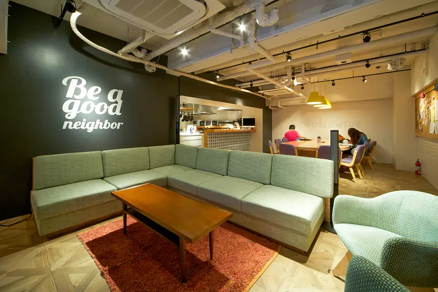 施設名の”ワールドネイバーズ”は「世界を身近に」をテーマに、日本にいる事を忘れるような日常という意味を込めています。世帯数は180世帯とソーシャルアパートメント最大級のコミュニティ。住人の数も多く、外国籍の方も多く住んでいてまさにワールドワイド。ラウンジはもちろん、ワークスペースや鏡張りのスタジオ、ルーフバルコニーなど充実した共用部も楽しめます。