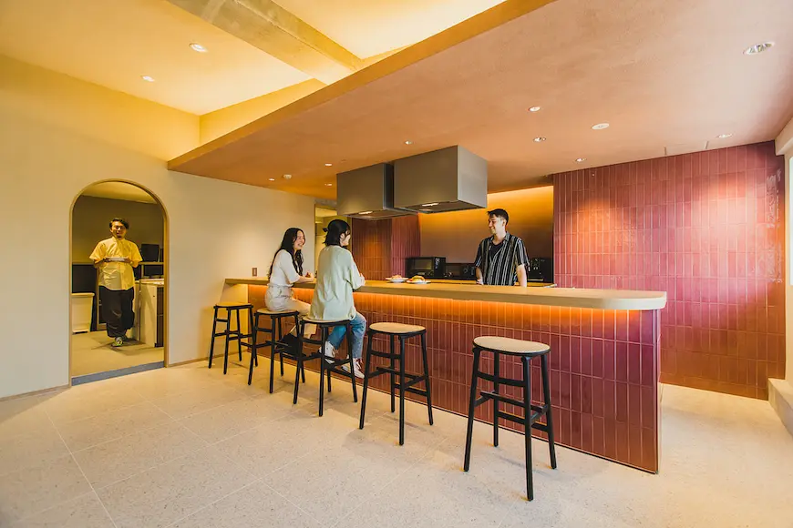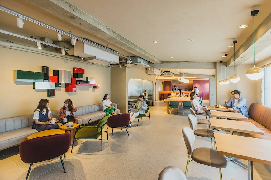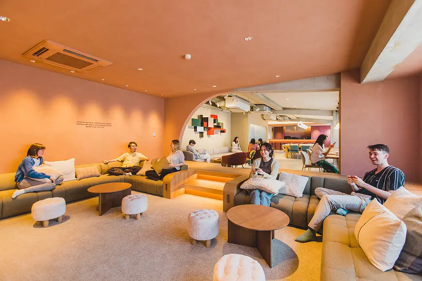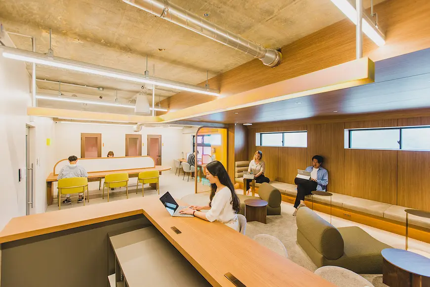 空間内の照明やレイアウトによって、時間帯やシーンごとにスペースの使い方が変わる仕掛けが施されています。日中は仕事に集中できるワーキングラウンジが、夜になると照明の調整によってバーラウンジに変化し、リラックスや交流の場として機能します。また、履物を脱いでリラックスできる小上がりスペースは、気分を切り替えて休息を取るための理想的な場所となっています。