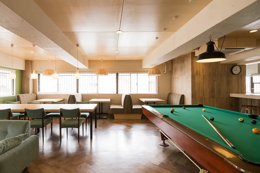 ソーシャルアパートメント日野は、JR中央線「日野」駅から徒歩13分、自然豊かな環境に位置します。65㎡の西海岸テイストのラウンジやプレイルームにはダーツやビリヤードを完備。広さ15㎡のワンルームは収納も充実しており、家賃は4万円台とリーズナブル。自然と歴史が共存する多摩エリアで、リモートワークや遊びを両立した快適な生活が楽しめます。