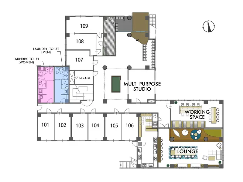 お風呂上がりのストレッチや、趣味の時間を楽しめるマルチパーパススタジオも24時間利用可能。120インチのスクリーンを下ろして映像を流しながらの作業も出来ます。
