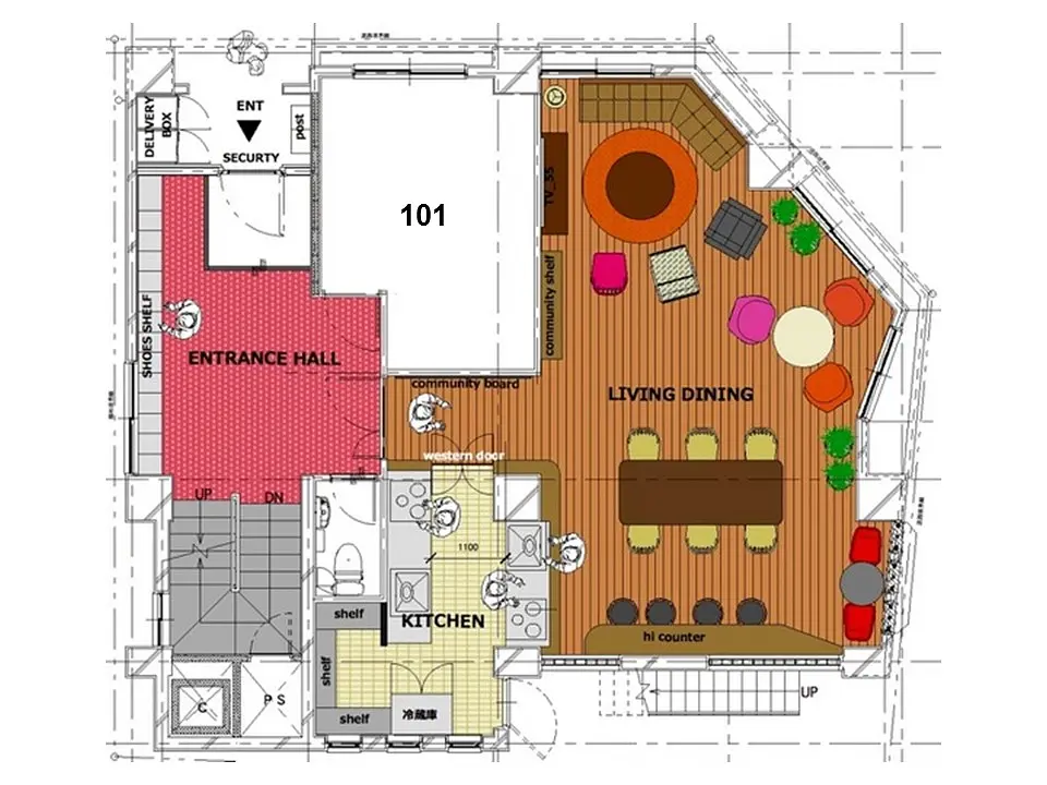 40㎡の地下スペースは、感性豊かな27世帯の住人が集まり、交流を深める場所です。新しいコミュニティが自然と形成されます。