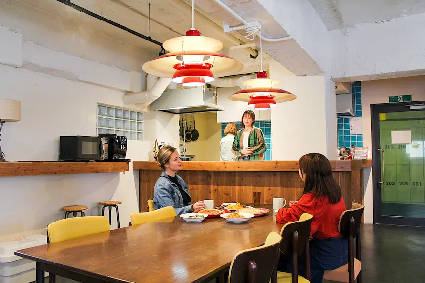 ソーシャルアパートメント麻布十番は、ミッドセンチュリーの家具が配置された50㎡のラウンジが魅力です。ダイニングテーブルやソファでリラックスし、充実したキッチン設備で料理も楽しめます。麻布十番駅から徒歩1分という好立地で、洗練された生活と地域のイベントを楽しめる環境が整っています。