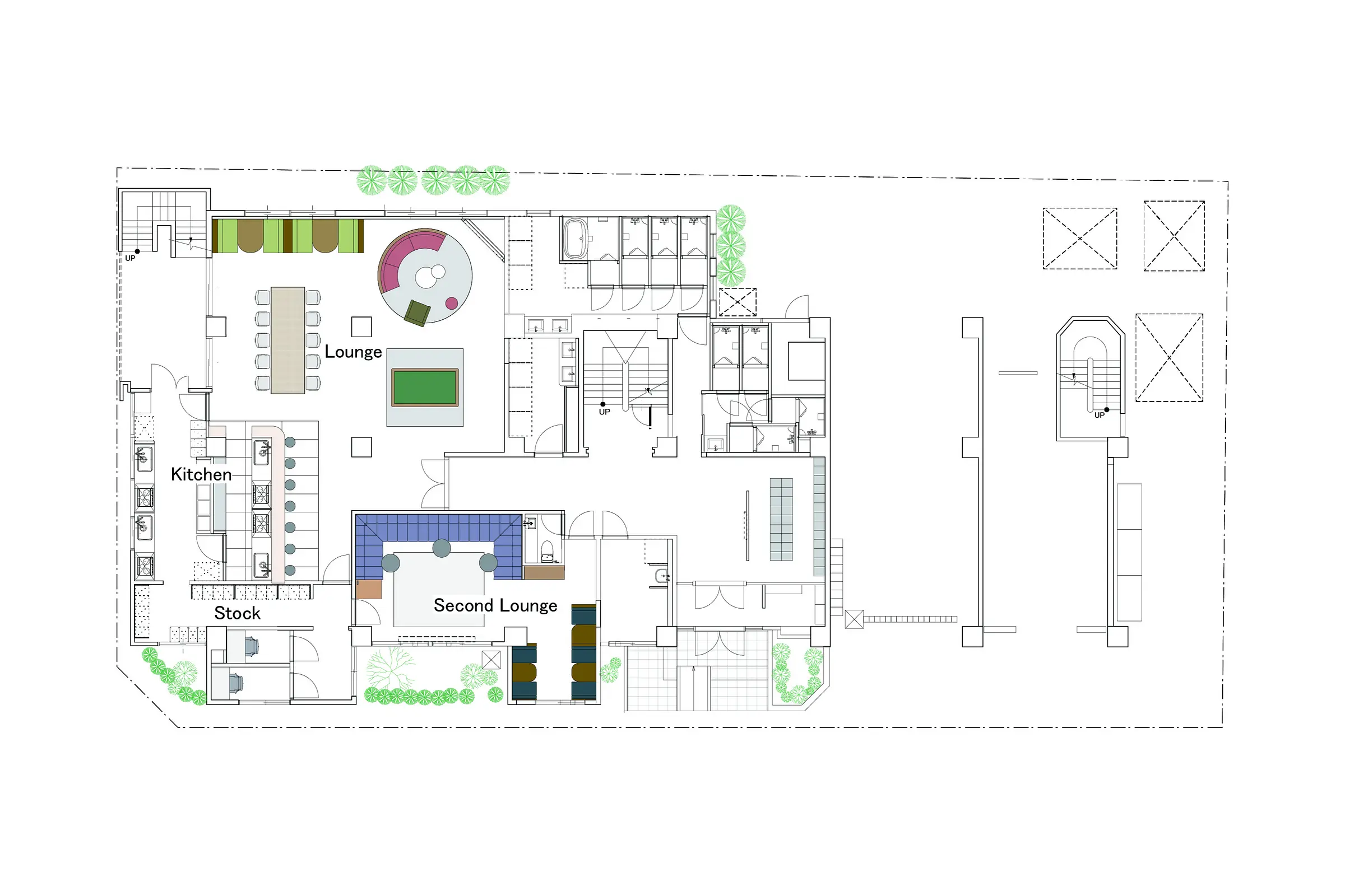 食事や仕事、くつろぎの時間など多彩な用途で過ごせるメインラウンジと、夜はシアターに変わる多機能なコワーキングスペースが魅力。