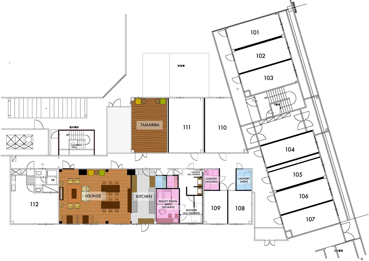 The layout of the private apartments, consisting of 44 units in total, is mainly the popular 1K type, with bath and toilet in the same room, but the toilet is equipped with a bidet.