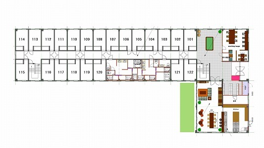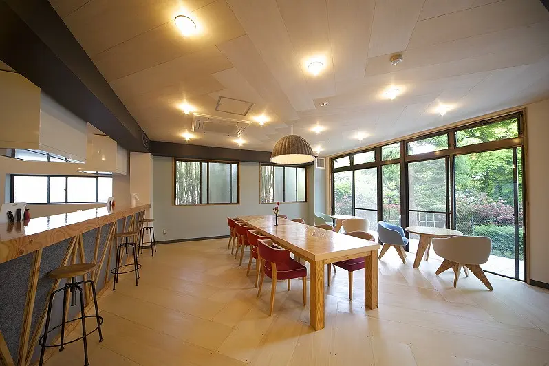 Social Apartment Oizumigakuen is located in a peaceful, green residential area, where you can enjoy beautiful cherry blossom trees in the spring. The common spaces include a spacious 90㎡ lounge, a kitchen equipped with the latest appliances, and a garden where you can enjoy BBQs. Working lounge is providing a comfortable environment for remote work.