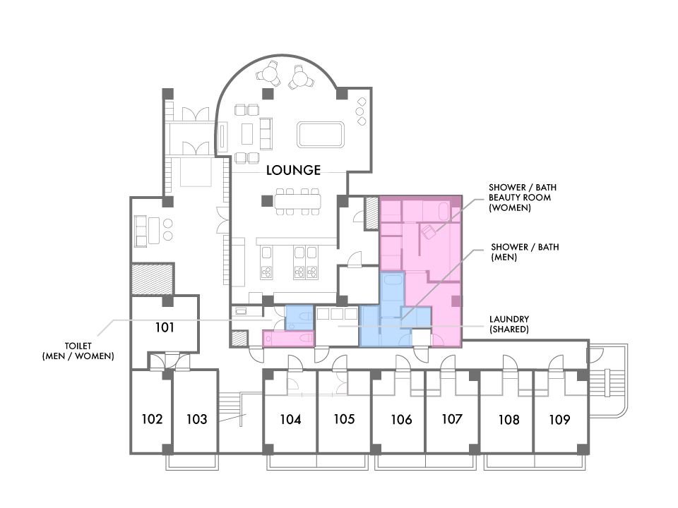 Social Apartment Nishi-Ogikubo features one-bedroom units with en-suite washbasins, offering a convenient and comfortable living experience. Lounge inspired by Nordic design, uses natural materials to create a warm, relaxing space that helps you escape the hustle and bustle of the city. Located in Nishi-Ogikubo area, the apartment is easily accessible by bus or bicycle, nestled in a residential neighborhood surrounded by greenery, where you can enjoy a peaceful, serene lifestyle.