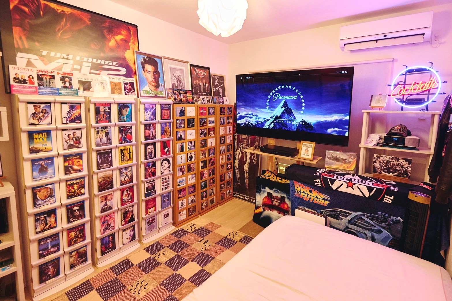 7畳のスペースに集約されているとは信じられない数のコレクションにこれもあれもと止まらぬ質問にもたくさんご紹介いただき、最後は筆者もトップガンの冒頭だけ一緒に鑑賞させていただきました・・!(贅沢)