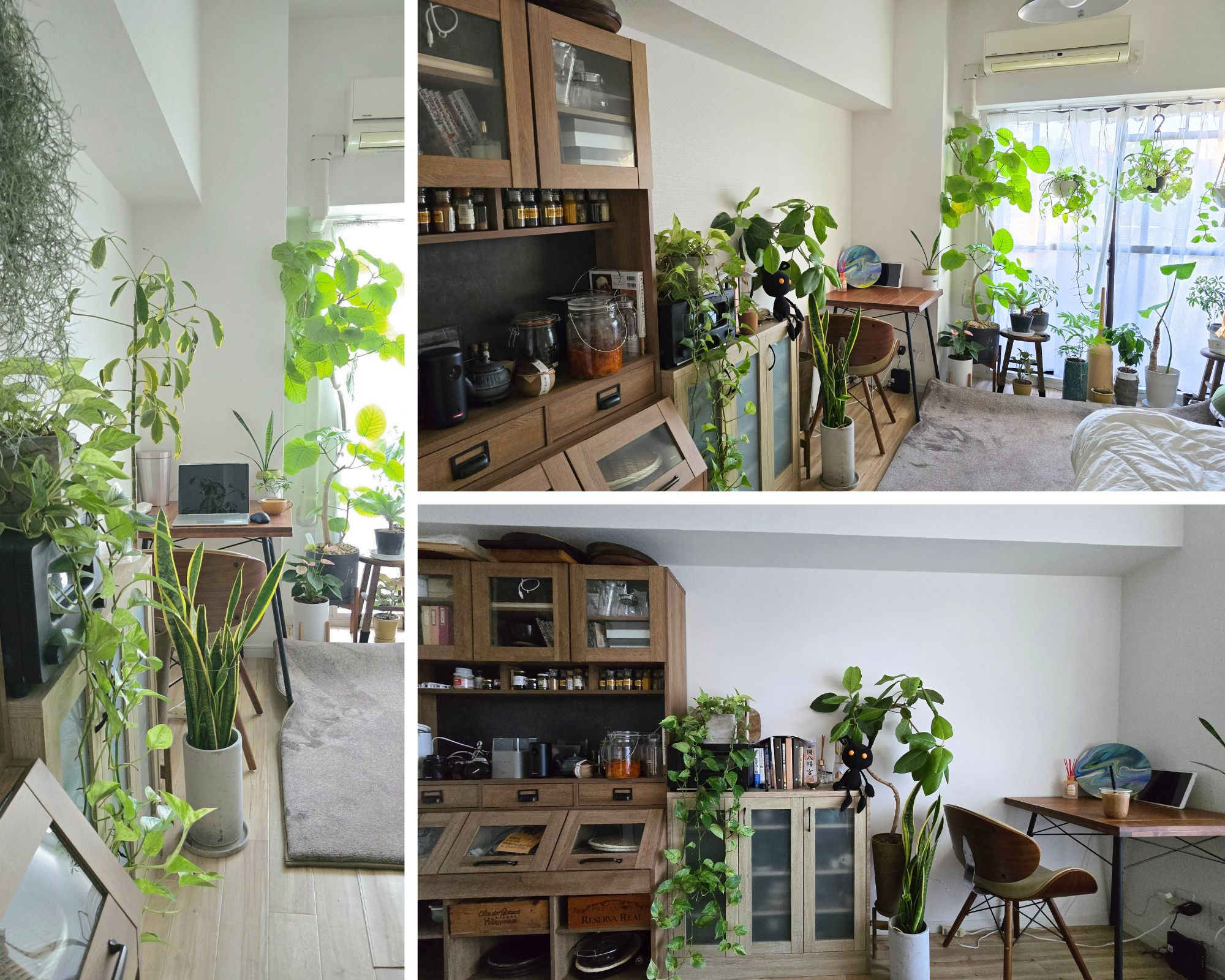 Inspired by the cozy vibe of a stylish café, this space is filled with vibrant greenery. Keeping houseplants healthy isn’t easy—too much or too little care, and they’re quick to wilt. But C clearly has the magic touch, keeping a wide variety of plants in tip-top shape with no yellowing leaves in sight.