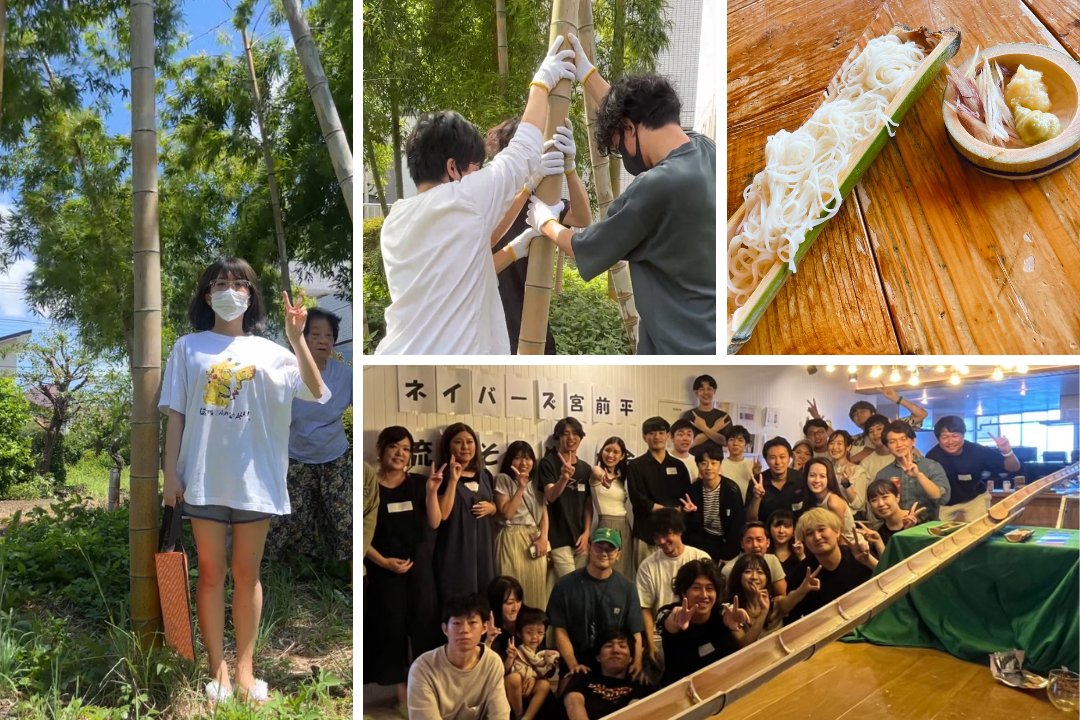 らむさん:新しい入居者さんがたくさん入ってくるタイミングで歓迎会を開いたり、季節のイベントも開いたりしてましたが、今まで企画に携わった中での大人数のイベントは流しそうめん大会です。実際に竹を使って開催しました(笑)。ネイバーズ宮前平周辺には徒歩圏内にソーシャルアパートメント宮前平とネイバーズ鷺沼(さぎぬま)があるので、折角なら他物件との交流も兼ねて企画しました。たしか、40人くらい集まってくれました!