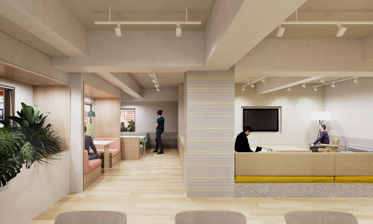 You can enjoy the unique lifestyle of a social apartment by using the knowledge you input on the 3rd floor to output in the studio on the 2nd floor, or by mixing with a variety of people and values in the lounge on the 1st floor.