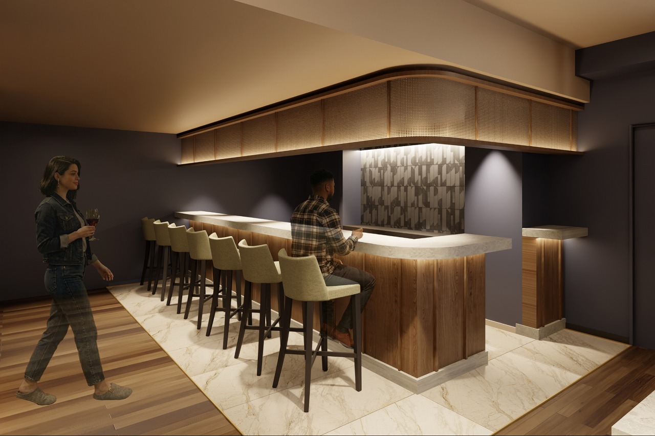 A coffee counter is also provided, allowing residents to refresh themselves or work in a café-like environment whenever they like.