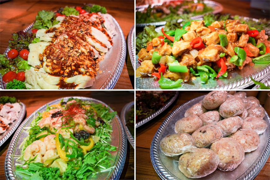 さて、参加者さんも揃い18時から開店です!会場の10階バーラウンジからは公園の緑とビル街が一望でき、夜になると夜景も楽しめそうな贅沢な空間です。しかし景色以上に参加者さんの視線を集めたのは、テーブルを彩る中華料理の数々…。