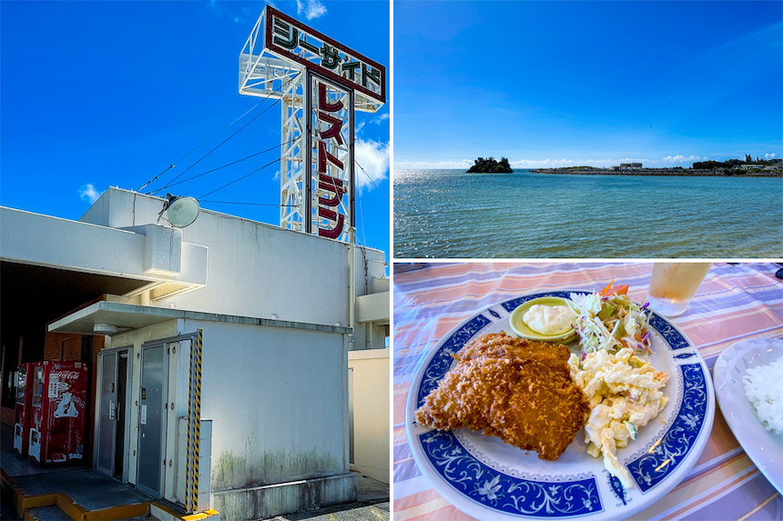 夜まで予定が空いていたので、ホテルのラウンジに置いてあった「沖縄の建築」という本をパラパラとめくっていて気になった「シーサイドドライブイン」までドライブ。創業者が米軍基地内のレストランを見てそのスタイルを気に入り、1967年に地元である恩納村にオープンしたのだとか。50年以上もドライバーのお腹を満たしてきたんだな〜と歴史を感じながら見学してきました。