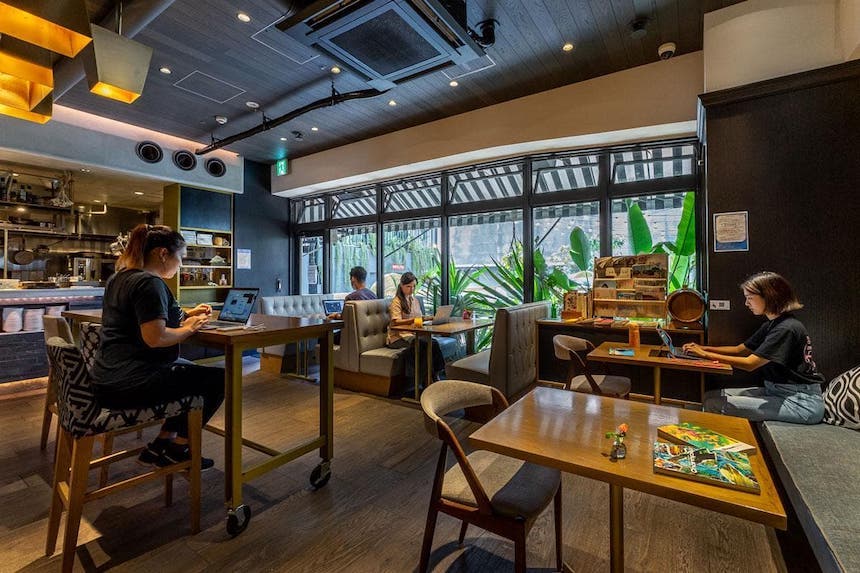 ホテルに戻り、ラウンジで他のメンバーも合流し乾杯。美味しかったランチや居酒屋、楽しかったスポットをシェアし合い、明日はどこに行こうかとみんなでワイワイおしゃべり。一人でワーケーションに来るよりも、友達もできて情報もシェアできるので滞在もより楽しめます。