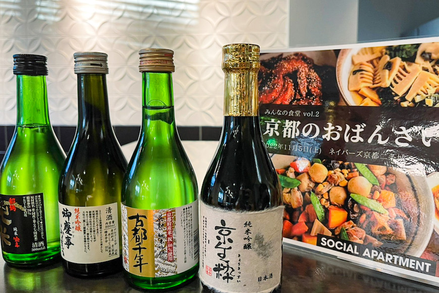 さらに今回は日本酒も用意しました!日本酒LOVERな運営スタッフが、今回の料理に合わせて4種類をセレクト。京都の地酒を中心に辛口から甘口まで様々なおばんざいとペアリングできるようにするなど、さすが日本酒大好きならではの気合の入れようでした…。