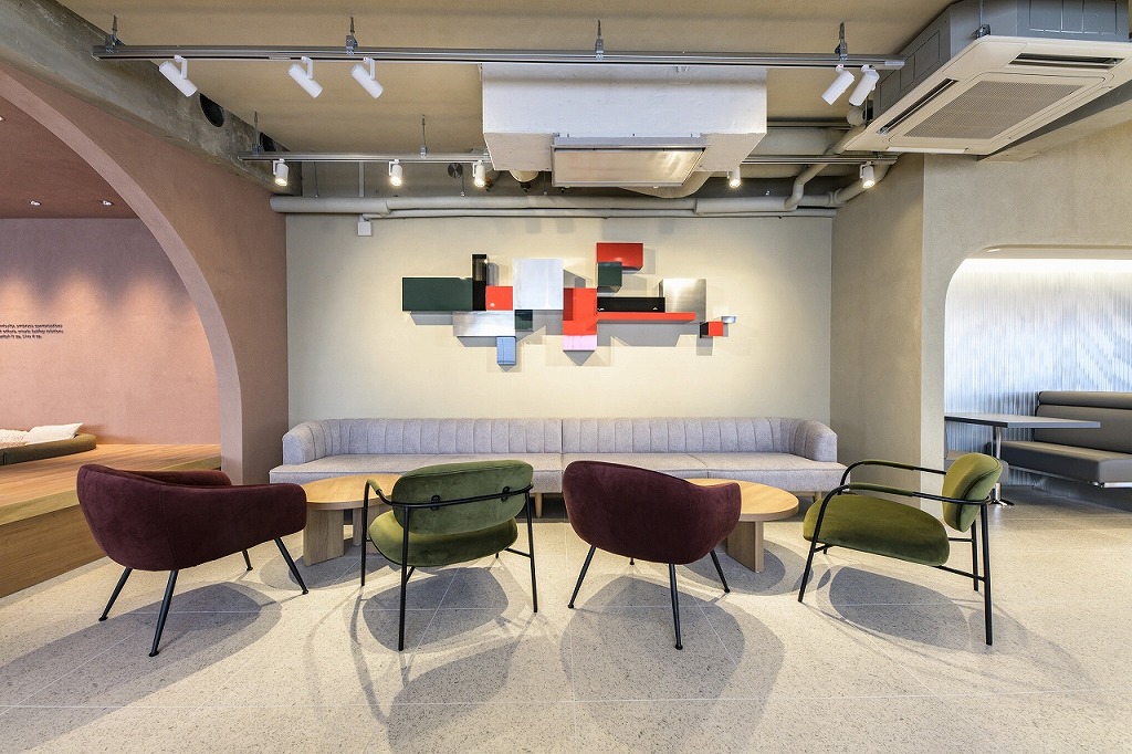 約150㎡の広々として縦長なラウンジ空間は、入居者さんが、様々なシーン(使い方)や、利用人数規模に併せて座席を選ぶことができるよう5つのエリアにプランニングされています。
