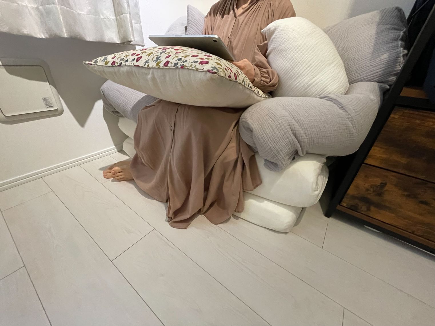 白やくすみカラーを基調とした、グレイッシュで柔らかな雰囲気にゆみさんのお人柄も感じられますが、そんなゆみさんに、ソーシャルアパートメントやご自身のお部屋について10個の質問をぶつけてきました。