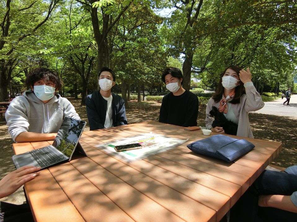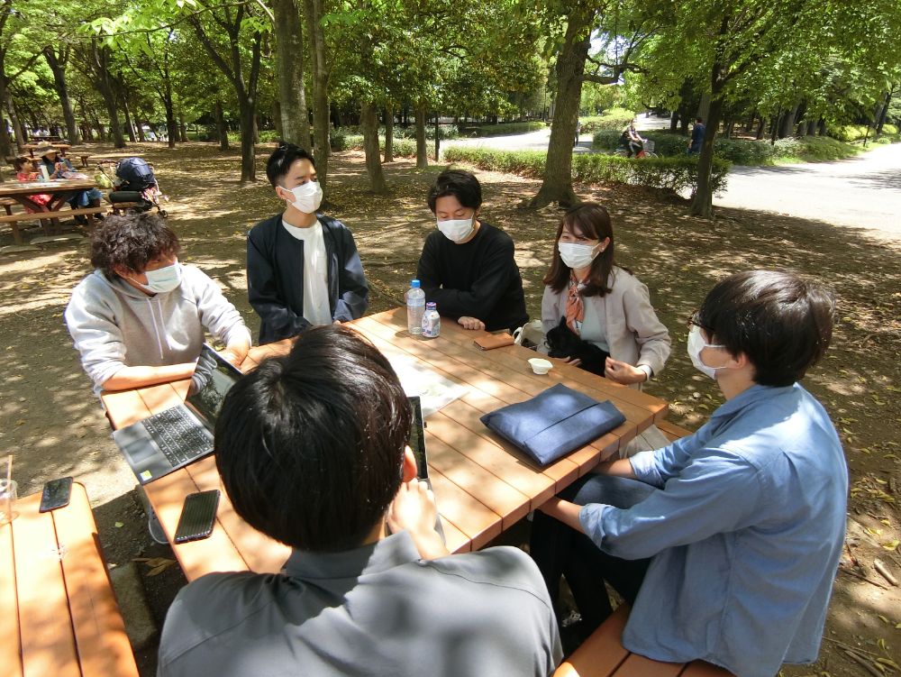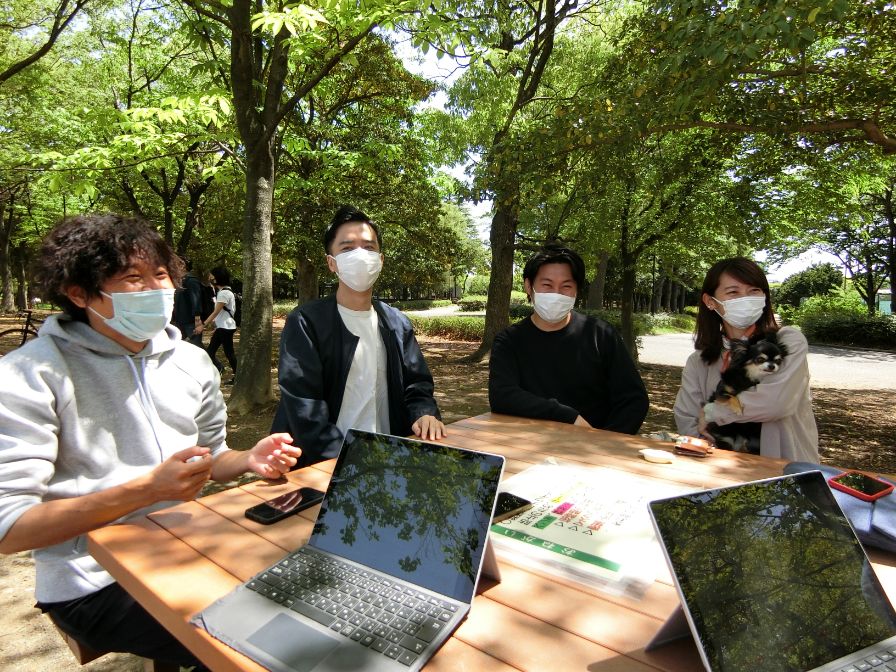 この日は天気も良かったので、WNKの目の前にある清澄白河のシンボル「木場公園」で取材を敢行。皆さんの出会いから、チーム結成のきっかけ、現在取り組んでいるプロジェクトについてなど、詳しくお話を伺いました。