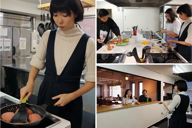 ち:市川さん、コーンスープ温めてお皿にサラダの盛りつけしててください。こちらはハンバーグ作りますね~。