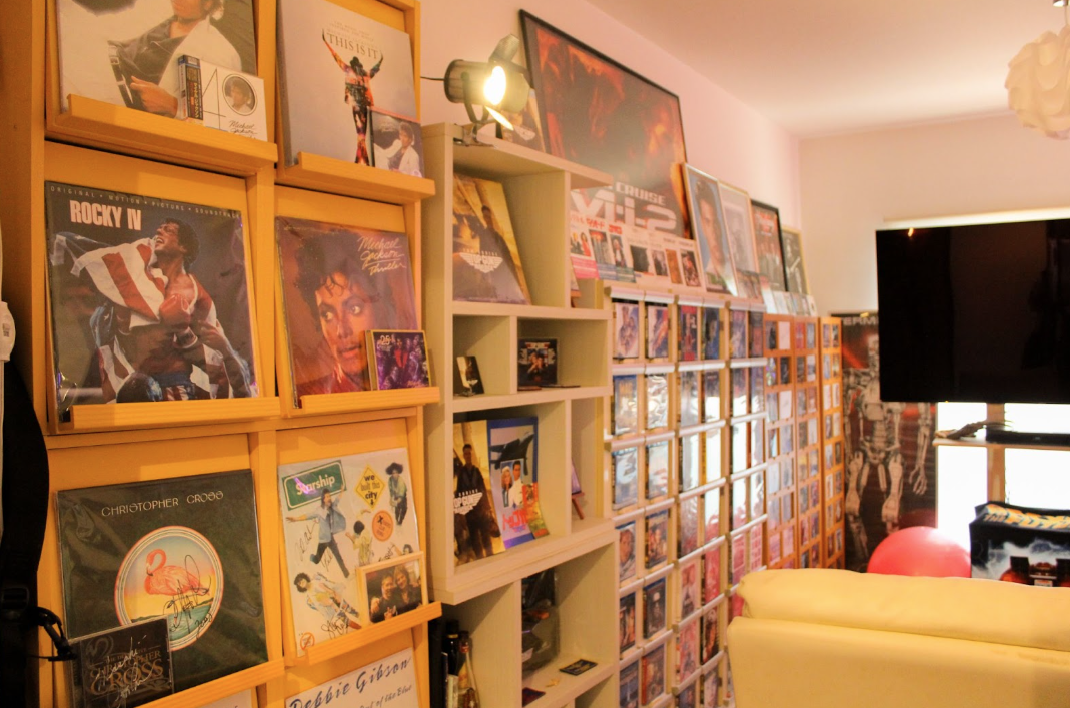 お部屋に一歩足を踏み入れるだけで圧倒される、80年代の映画やポップ・ミュージックコレクションの世界がぎっしりと詰め込まれていました。