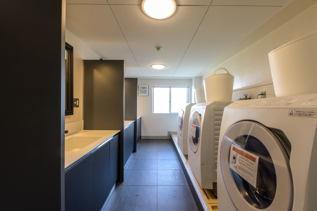 2階から4階にあるランドリールームの洗面台は、鏡、洗面台本体、ライトに至るまで全てがアップグレードされました。