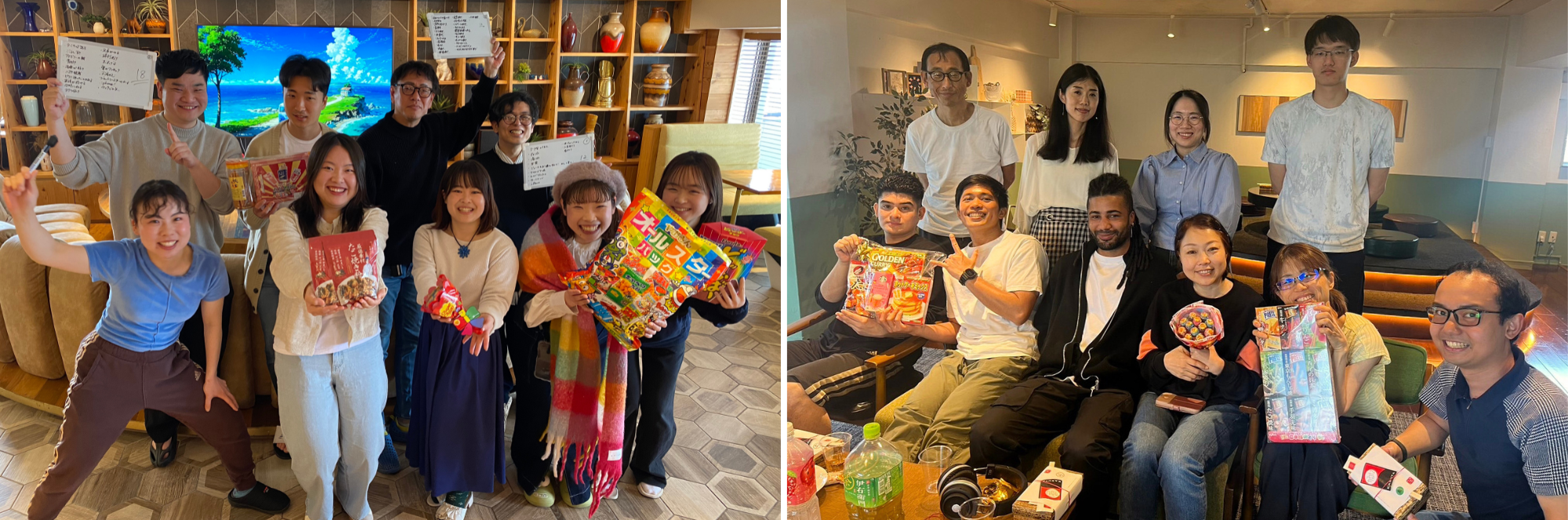 今回は皆で仲良くお弁当とお菓子を片手に、共用部のダイニングテーブルやラウンジテーブルを囲んで、クイズやゲームを交えながら談笑し、交流の輪を広げていただきました!