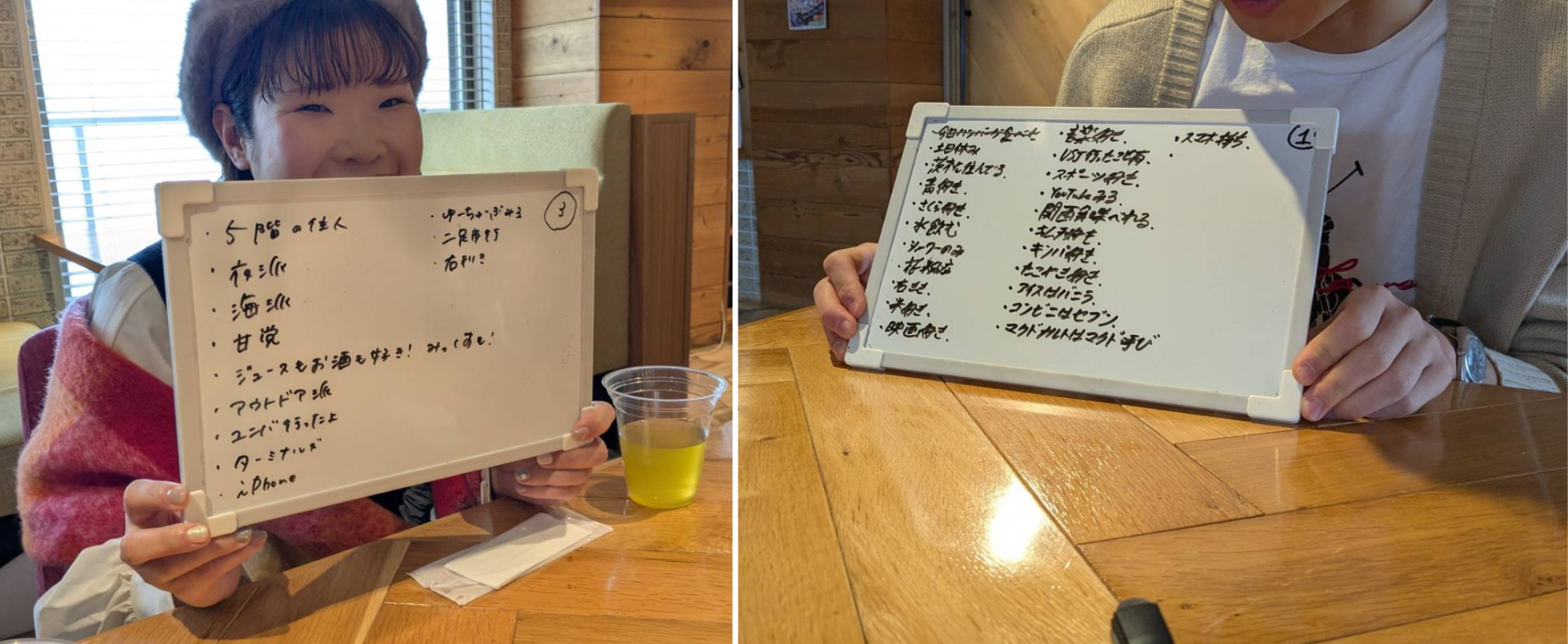 たったの5分間でも、ホワイトボードはお互いに発見し合った「共通点」でいっぱいになりました。