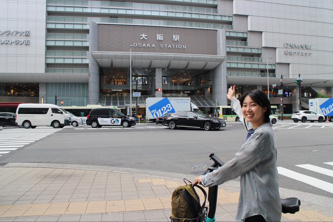 再び自転車を走らせること数分。あっという間に梅田エリアに到着しました。