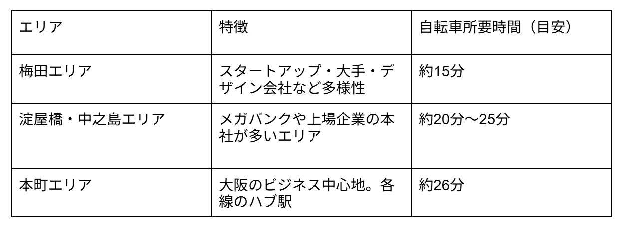 どのルートも淀川を渡るため、朝の光や風を感じながら出勤できるのも魅力のひとつ。都会のストレスをうまくすり抜けて、ちょっと余白のある一日をはじめる手段になるかもしれません。