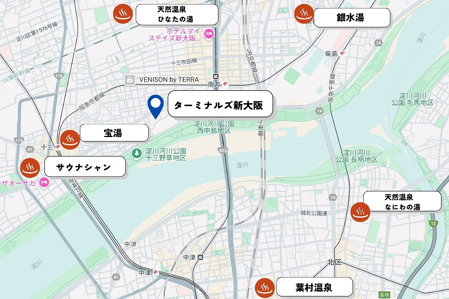 ターミナルズ新大阪周辺の銭湯マップ