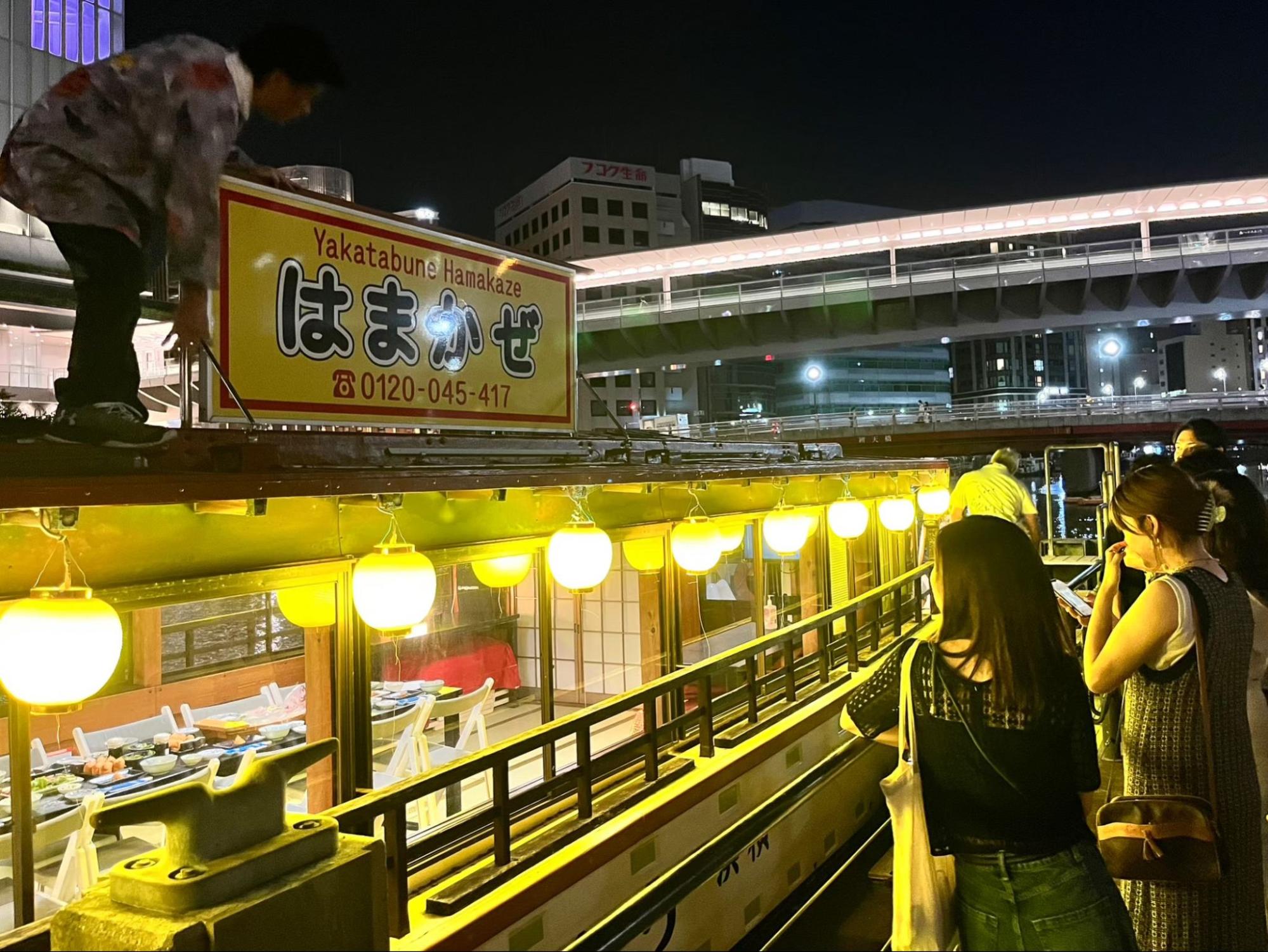 ソーシャルアパートメント宮前平の人が主催した屋形船に乗る会。ネイバーズ東十条のほかにも、いくつかの物件の住人が参加していました。