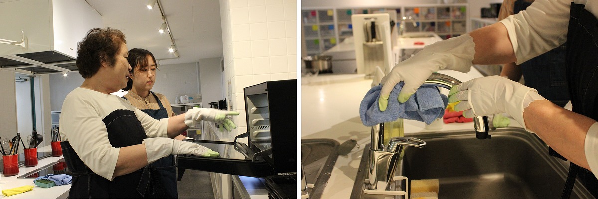 家電も一つ一つ細かい部分まで拭き上げます。蛇口はピカピカに光らせることを意識しているそう。