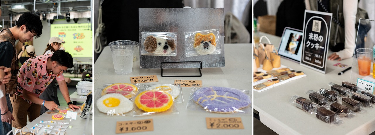 2つ目は、焼き菓子やアクセサリーなどのハンドメイド作品の出店。ソーシャルアパートメントの3000人近い入居者と繋がれる「サークル」で出逢った異なる物件の入居者さん3名で結成されたチームが、最近流行りのタフティングのアクセサリーから、丁寧に作られた焼き菓子を届けてくれました!