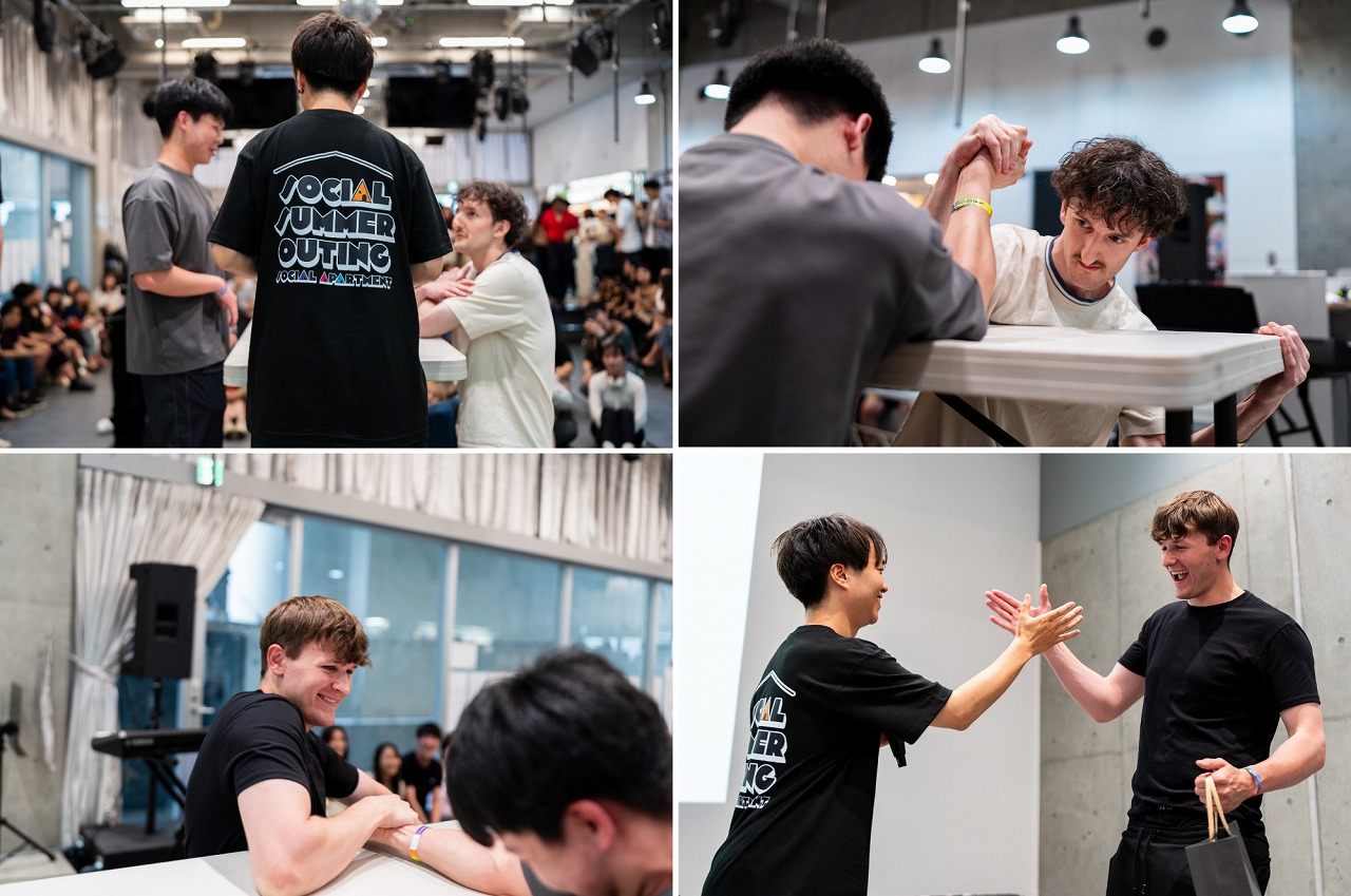 次は、ソーシャルアパートメントの共用部ラウンジでも良く見る光景のひとつでもあるスマブラ対決!なんと、実況中継付き。集中して姿勢が前のめりになったり、お口が開いたりと真剣勝負で戦う挑戦者の背後からは観戦する仲間たちの熱い応援が聞こえてきました。トーナメント形式で勝ち上った勝者には、なんと・・・ニンテンドー商品券をプレゼント!