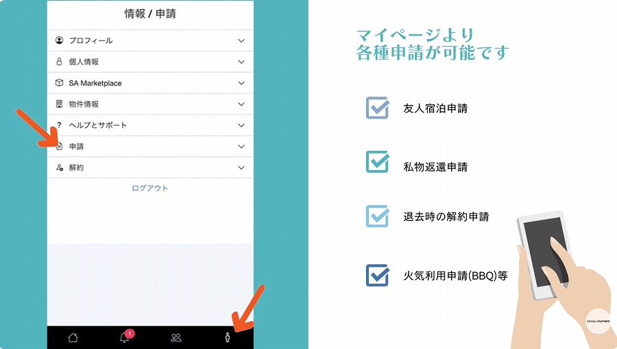 ソーシャルアパートメントでは、請求書の確認・契約締結・鍵の受け取り予約まで、すべてオンラインで完結します。(※一部契約を除く)印鑑は不要です。