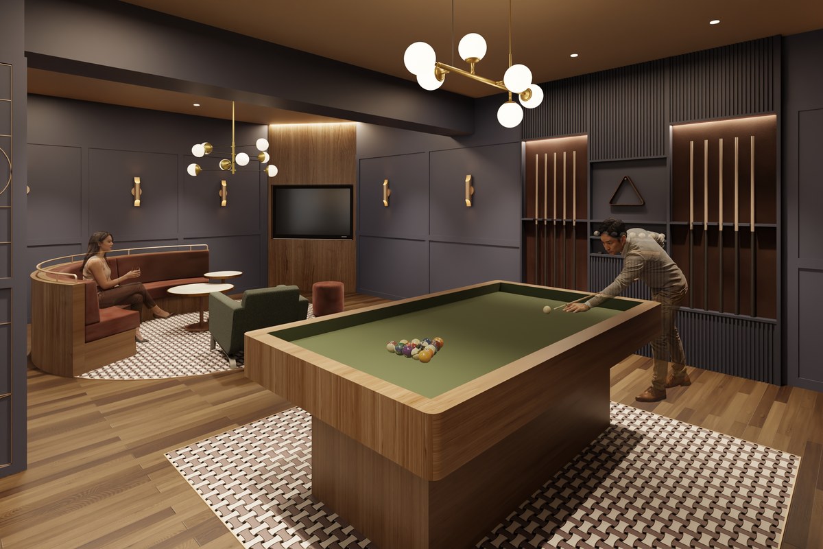 「メインのラウンジには、人工大理石を贅沢に仕様した大きなダイニングテーブルや、7ftのビリヤード台を設置予定です。最初は話すのも緊張してしまいますが、ゲームをしていると自然と仲良くなっています!」