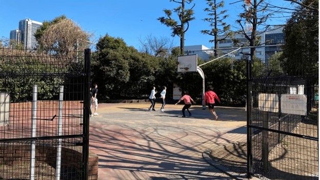 特にオススメしたいポイントは、バスケットゴールがあること。ストリートバスケが楽しめる場所は限られているので、こういった場所は貴重です。