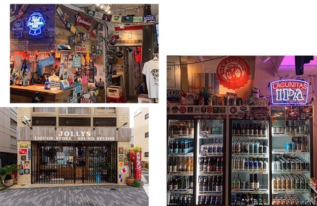 ビール好きにオススメ、世界中のクラフトビールや多国籍のビールブランドを試せるお店が「Jollys」。酒屋ですが、立ち飲みするためのバーもあり、冷蔵庫から直接酒屋価格のドリンクが楽しめます。