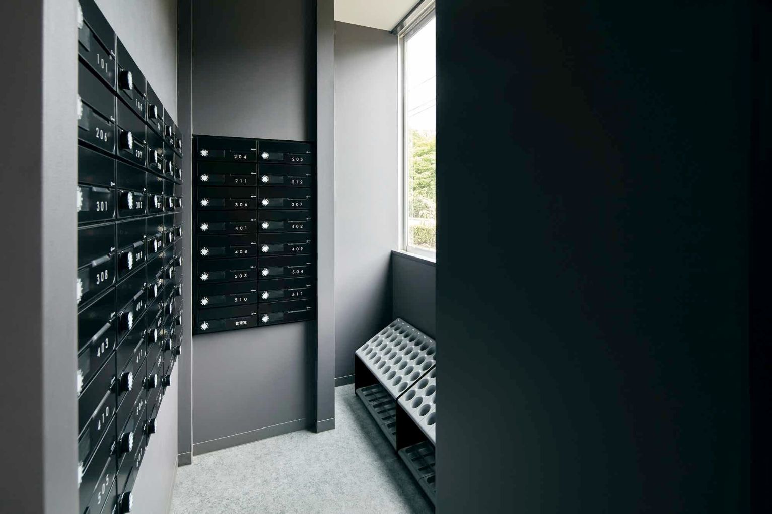 ここには集合ポストが設置されました。もちろん一部屋につき一つずつ用意されています。