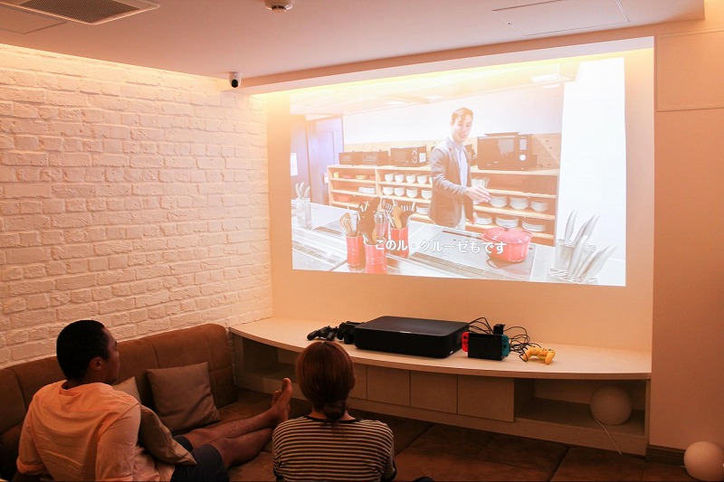 以前テレビで放映されていたテラスハウスの雰囲気に似ていて興奮しました。あとプロジェクターもあるのでゲームもでき、動画も観れるのはいいですね。