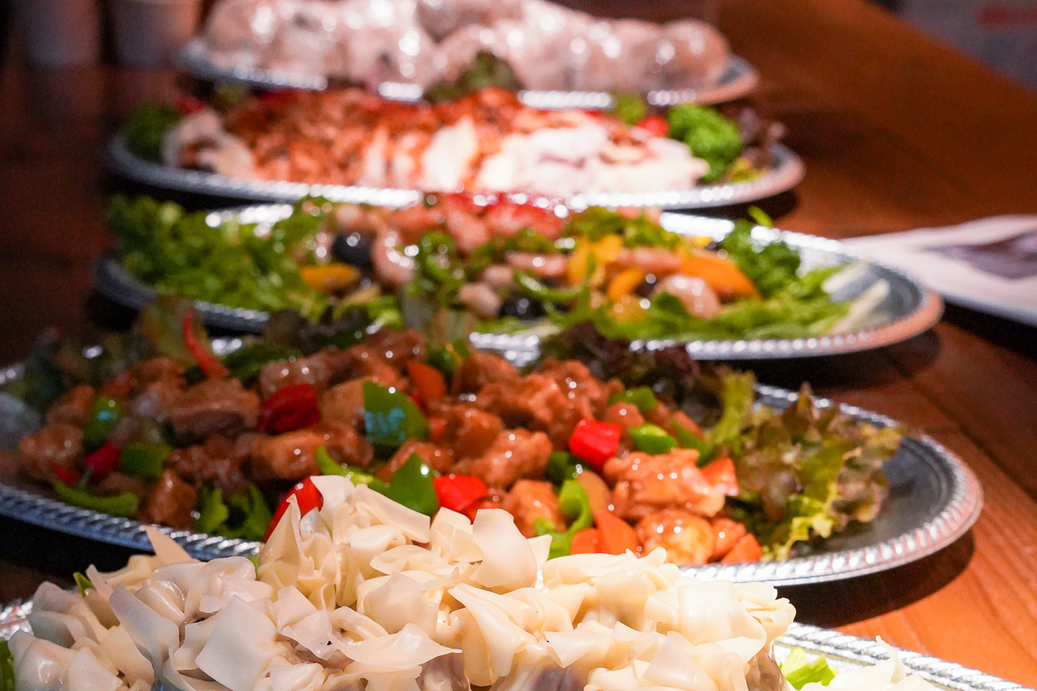 実は以前、会社の周年イベントでケータリングをお願いしたことがあり、その時も素敵な雰囲気と美味しい中華料理を提供いただき社内からもかなり好評でした。そんなこともあり、みんなの食堂を再開する時にはぜひお願いしたい!と思っていてこの機会にお願いをしてみたところ、快くお引き受けいただき、今回「ネオ町中華」をテーマとして開催することになりました。