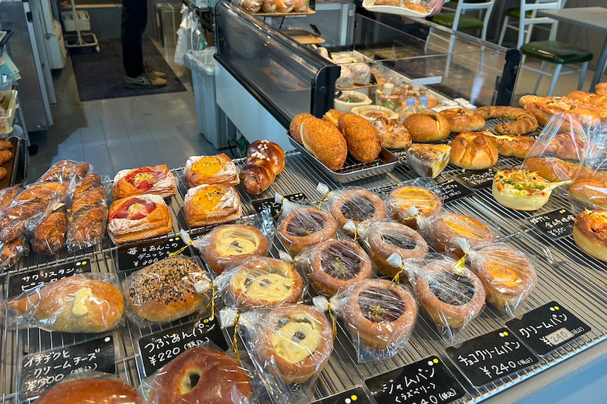 店内には色々な種類のパンがずらりと並んでいて、内装はシックな感じで地元の方も多く利用されているとのこと。