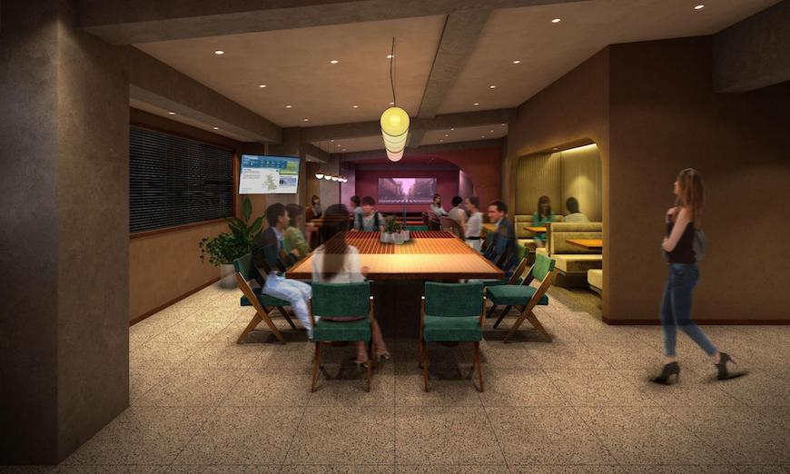 今回は工事中の物件に向かう前に、別のソーシャルアパートメントであるWORLD NEIGHBORS清澄白河に集合。受付をして10階のバーラウンジまで移動。まずはみなさんにソーシャルアパートメントのコンセプトやライフスタイルをご紹介。