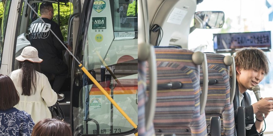 大型バスで清澄白河から葛西へ移動。バスの中ではネイバーズ葛西周辺についての案内や料金説明などを行い、プチバスツアー感覚!