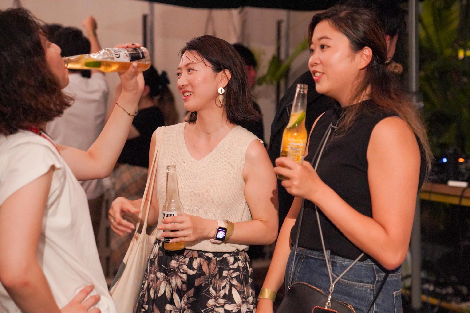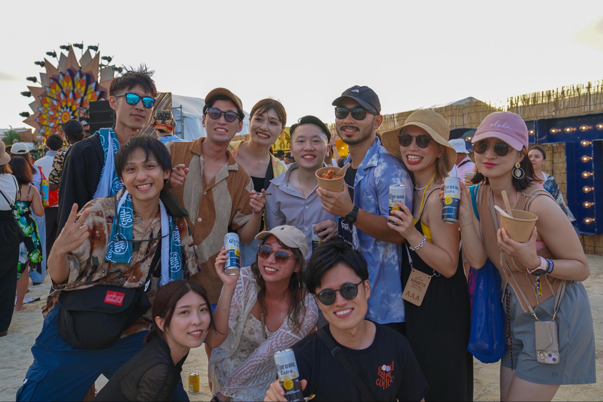 前夜祭の「SOCIAL APARTMENT DJ NIGHT」で仲良くなった入居者同士で、いざ本番の「CORONA SUNSETS FESTIVAL」へ!