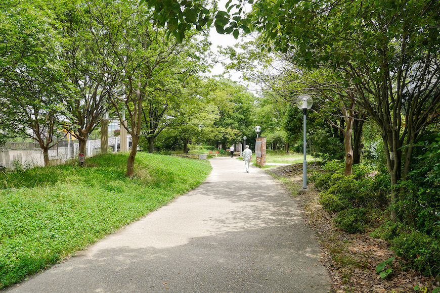 駅直結でアクセスができる江坂公園。公園内にはベンチや座り心地の良いスペースが点在していて、リラックスする場所としても利用されています。本を読んだり、お昼ごはんを楽しんだりしながら、穏やかな時間を過ごすことができます。それ以外にも散歩を楽しむことができるジョギングコースもあり、散策やランニングを楽しむことができます。