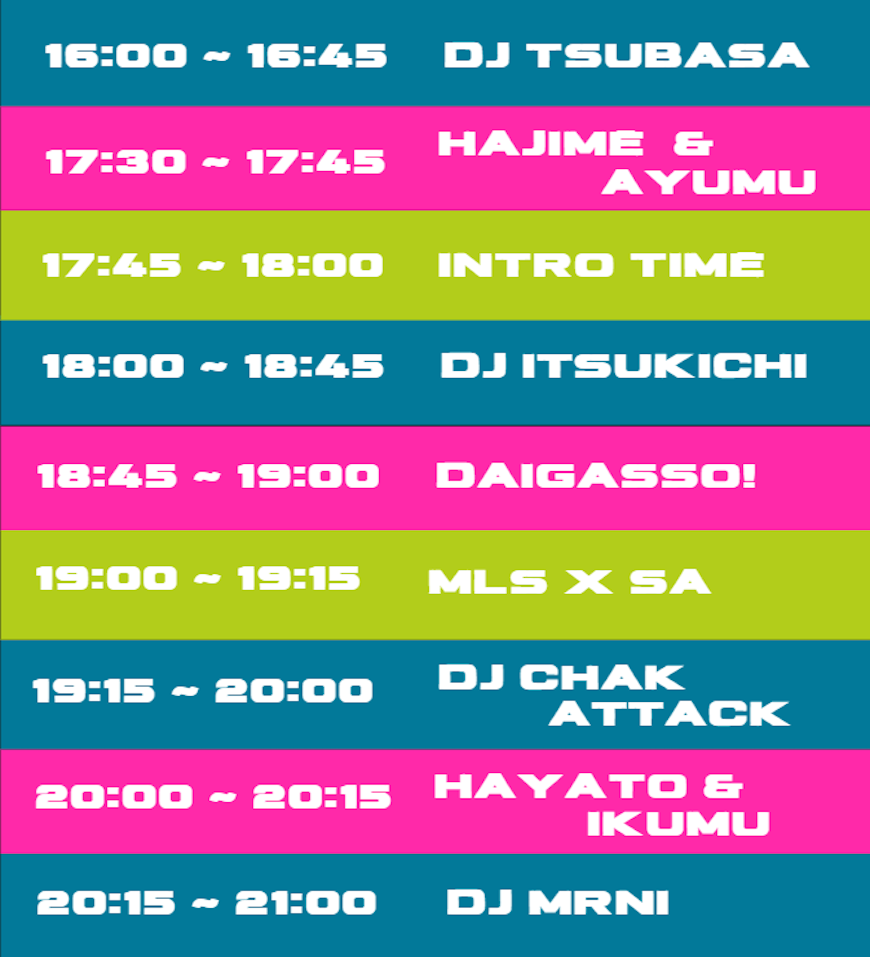 選曲やテクニックによってそれぞれのテイストも異なり、会場のムードまでもがらりと変えてしまうDJの皆さん・・かっこよすぎます!懐かし世代の楽曲でノスタルジックに心を掴むDJもいれば、「みんなが知ってる曲しか流さない」というこだわりで会場を一斉に盛り上げるDJも。ほかにも、グルーヴィーなリミックスやモダン・シティポップなど、心地の良い音楽で会場を包んでくれました。