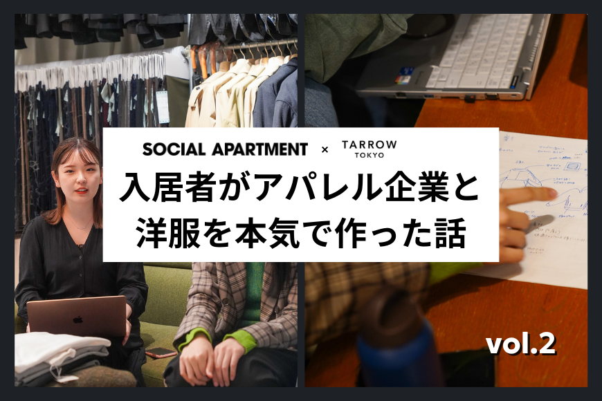 アパレル企業のTARROW TOKYOとソーシャルアパートメントの入居者チームで開始した「ルームウェアプロジェクト」。ソーシャルアパートメントの入居者ならではの視点で商品を開発し、実際に販売することを目指して取り組んでいます。TARROW TOKYOのWebサイトにて公開されているコラムを数回に分けてお届けしていきます。